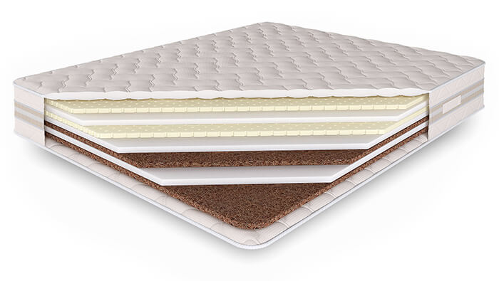 Модели из второй группы имеют комбинированное наполнение, состоящее из нескольких чередующихся слоев разных материалов. От того, как расположены настилочные слои, зависит жесткость спального места и ортопедические качества.